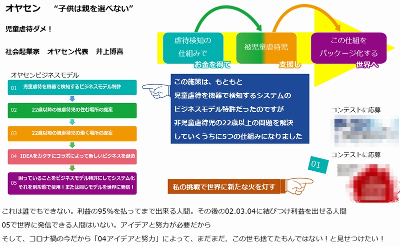今後は、社会起業家として「虐待減らすビジネスモデル」で特許出願中です